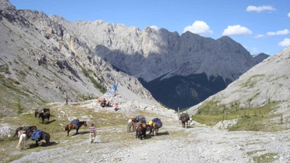 - Packpferde während des Trekkings zu den Rentierfamilien