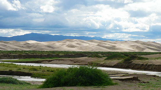 Sie fahren heute nach einer aufmunternden Yogasitzung und dem Frühstück durch eine wunderschöne Felsen-Schlucht zu der märchenhaften Sanddüne Khongor.